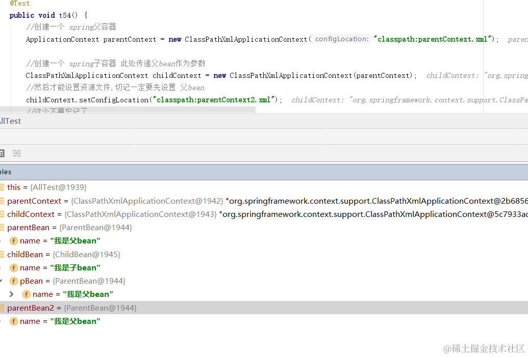 ParentBean parentBean2 = childContext.getBean("parentBean", ParentBean.class);