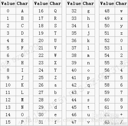 分成6个一组,转换10进制,查编码表