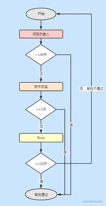 可以看得出来,我请假审批流程为项目负责人+技术总监+Boss。