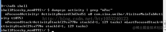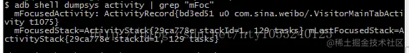 通过adb shell命令查看当前与用户交互的activity