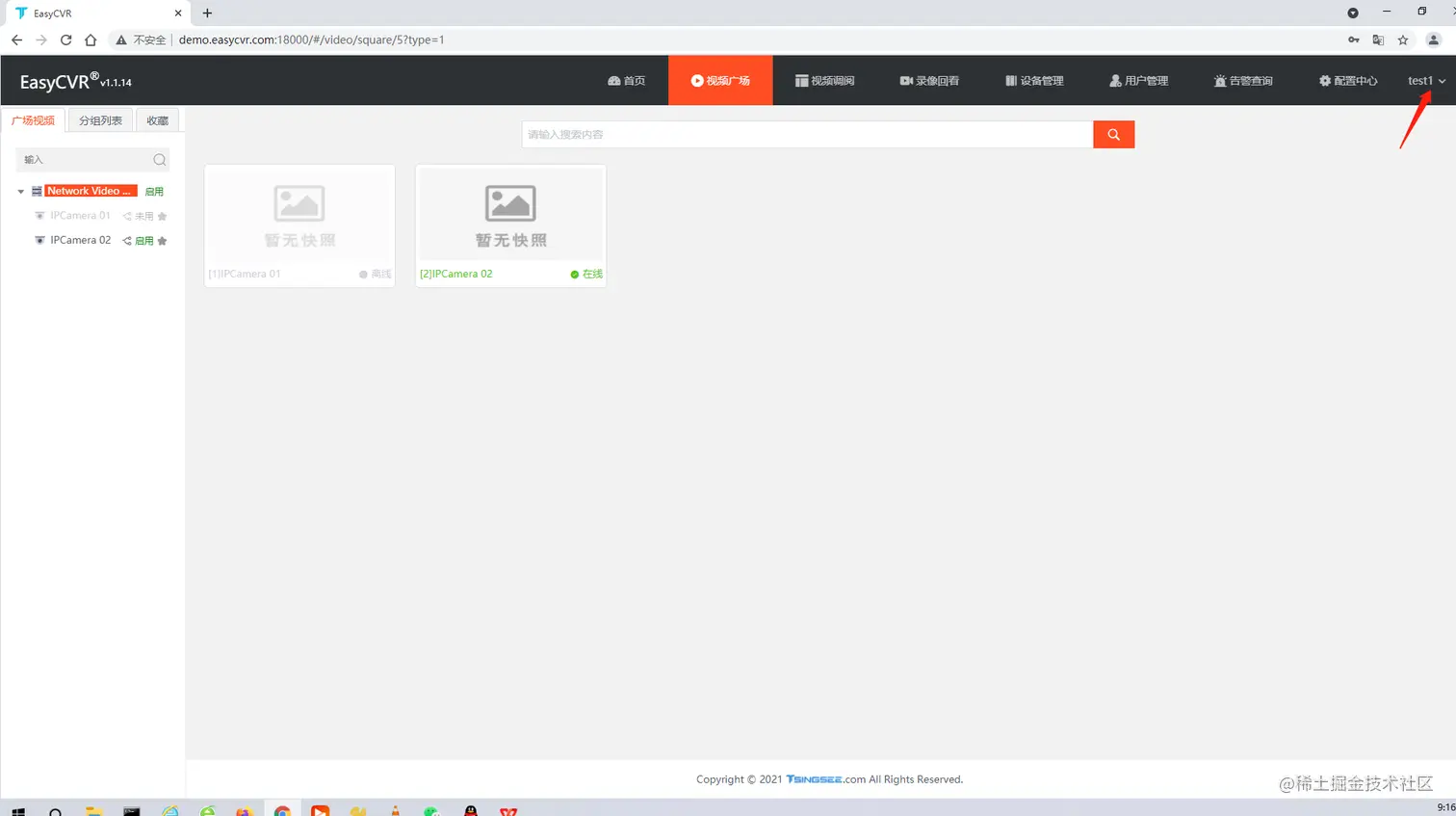 因为test1的角色里面的视频是我们刚刚创建的(小班)分组所以用户默认是有这个分组下面的视频观看权限的,我们使用新创建的用户进行登录,检查是否创建成功。显示如下所示即为成功。