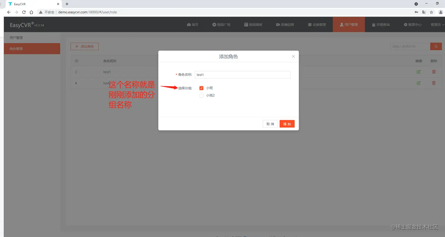 近期我们发现一个问题,即EasyCVR在进行创建新用户的时候,发现无法获取摄像机权限,角色在创建时无法选择摄像机。其实这个跟EasyCVR建立用户的机制有关,EasyCVR的用户创建和EasyNVR或EasyGBS不同,需要先建立分组,我们下面来重复一下正确的步骤。