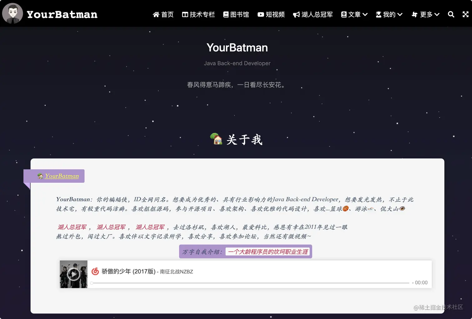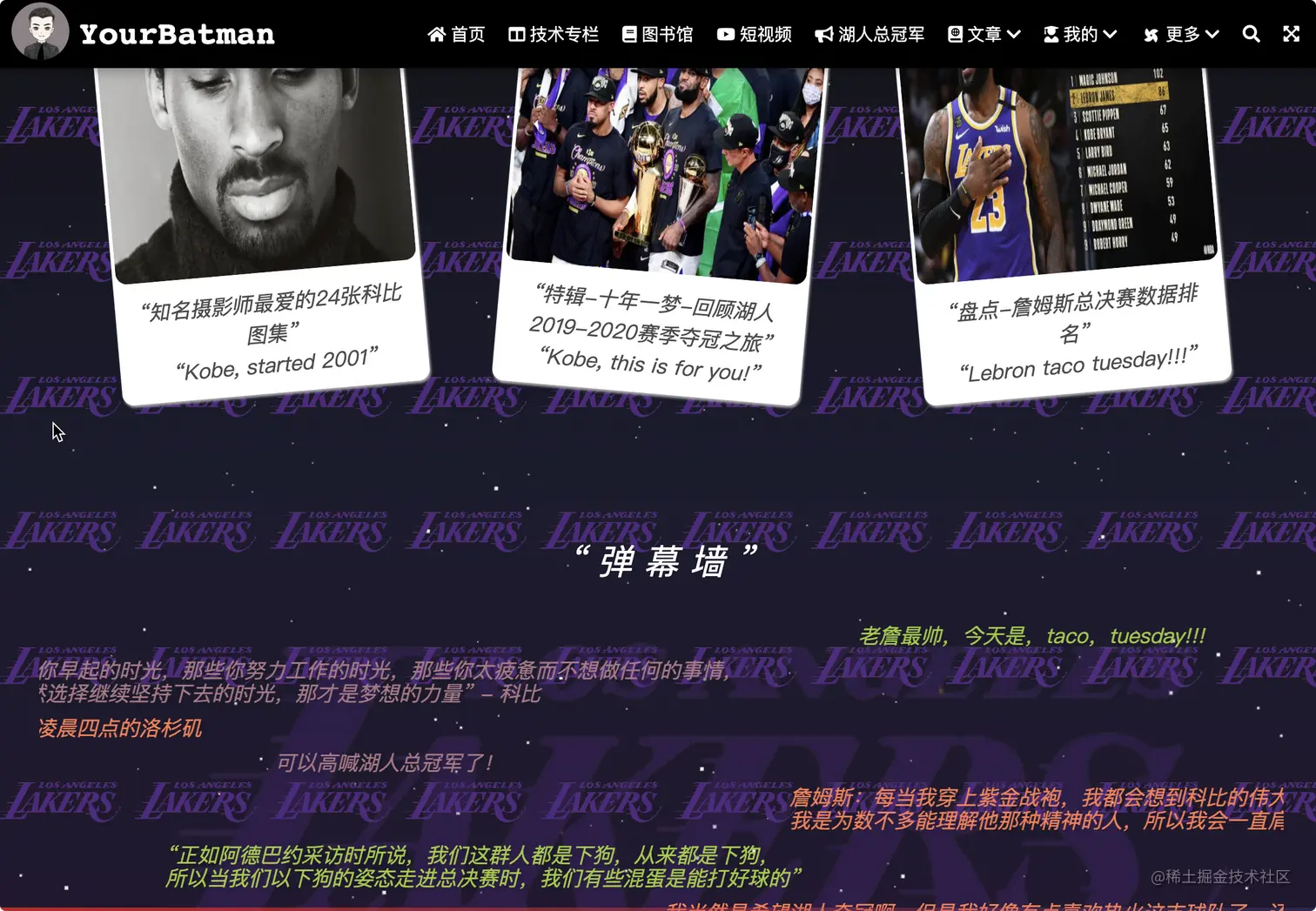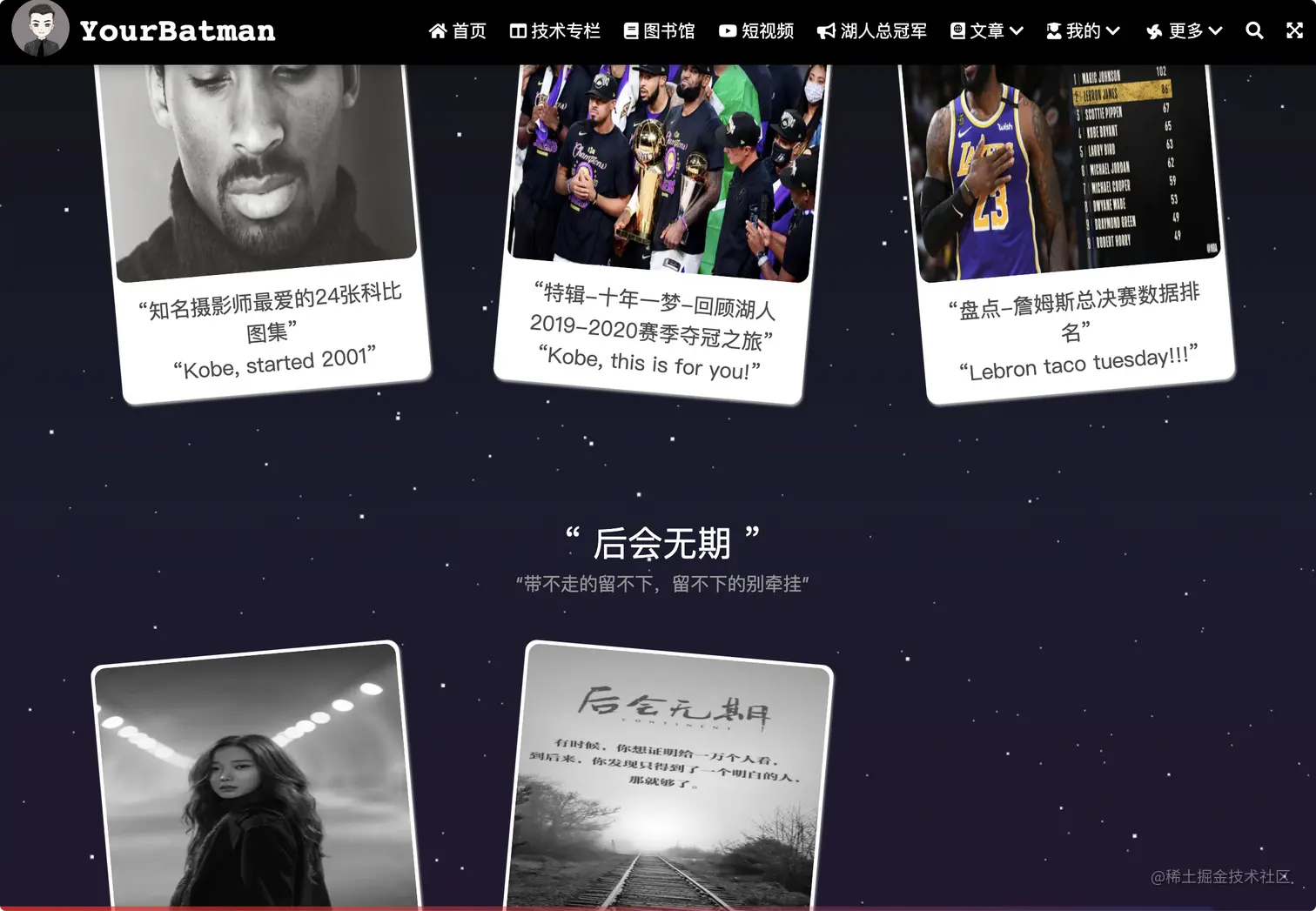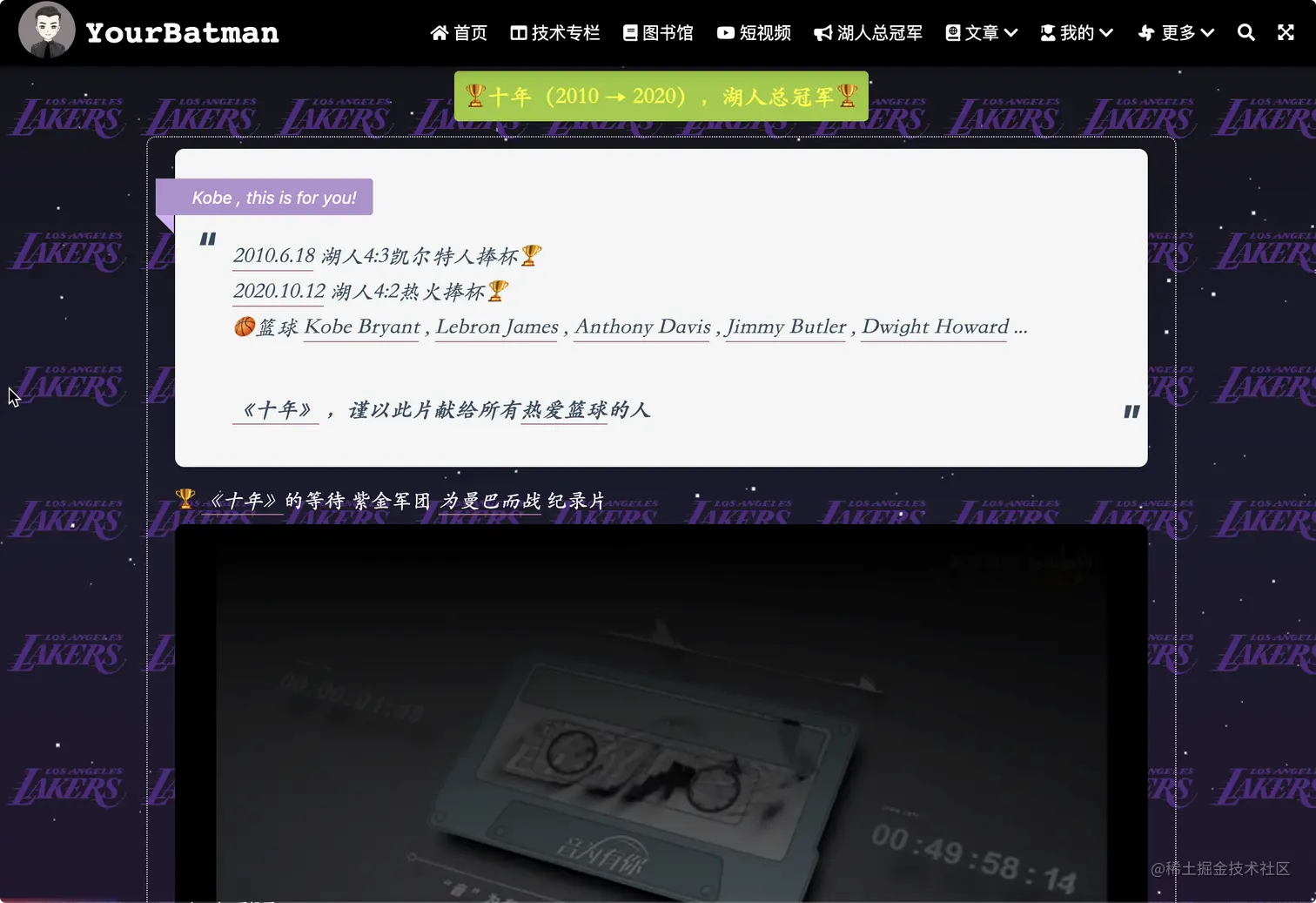 - 提供“湖人总冠军”、“小游戏”、“个人简历”等功能页面,能让站点多些人文气息。技术人并非一块木头~
