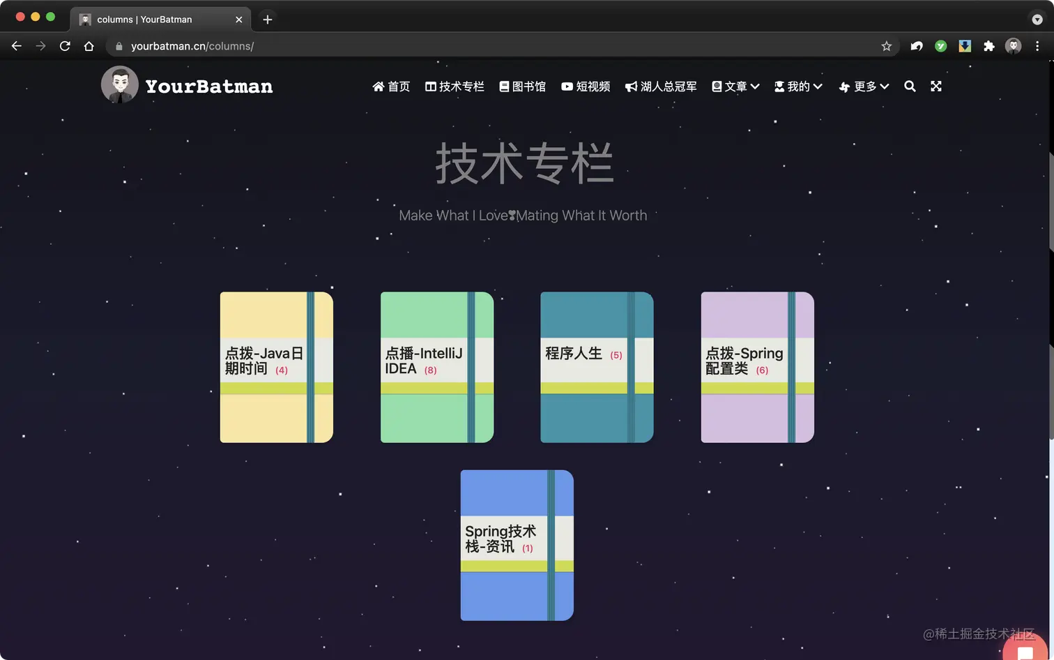 本页面的作用便是对文章进行按专栏分类,方便读者能顺序聚焦和索引。如下图所示: