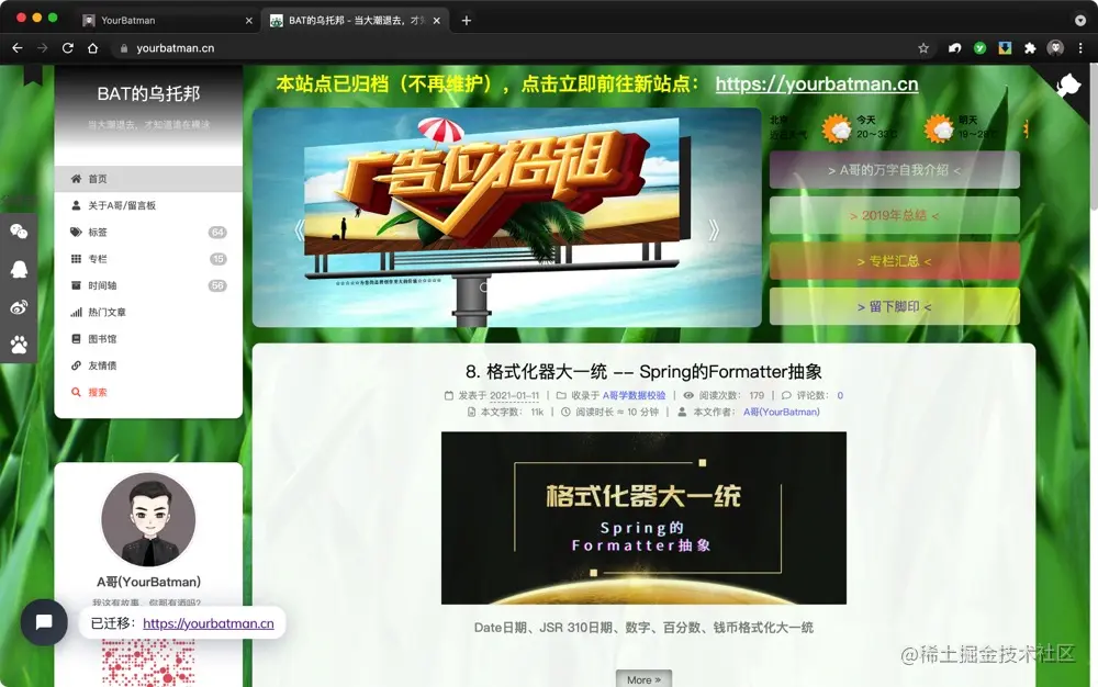 亦可直接访问(使用PC访问效果最佳):yourbatman.cn