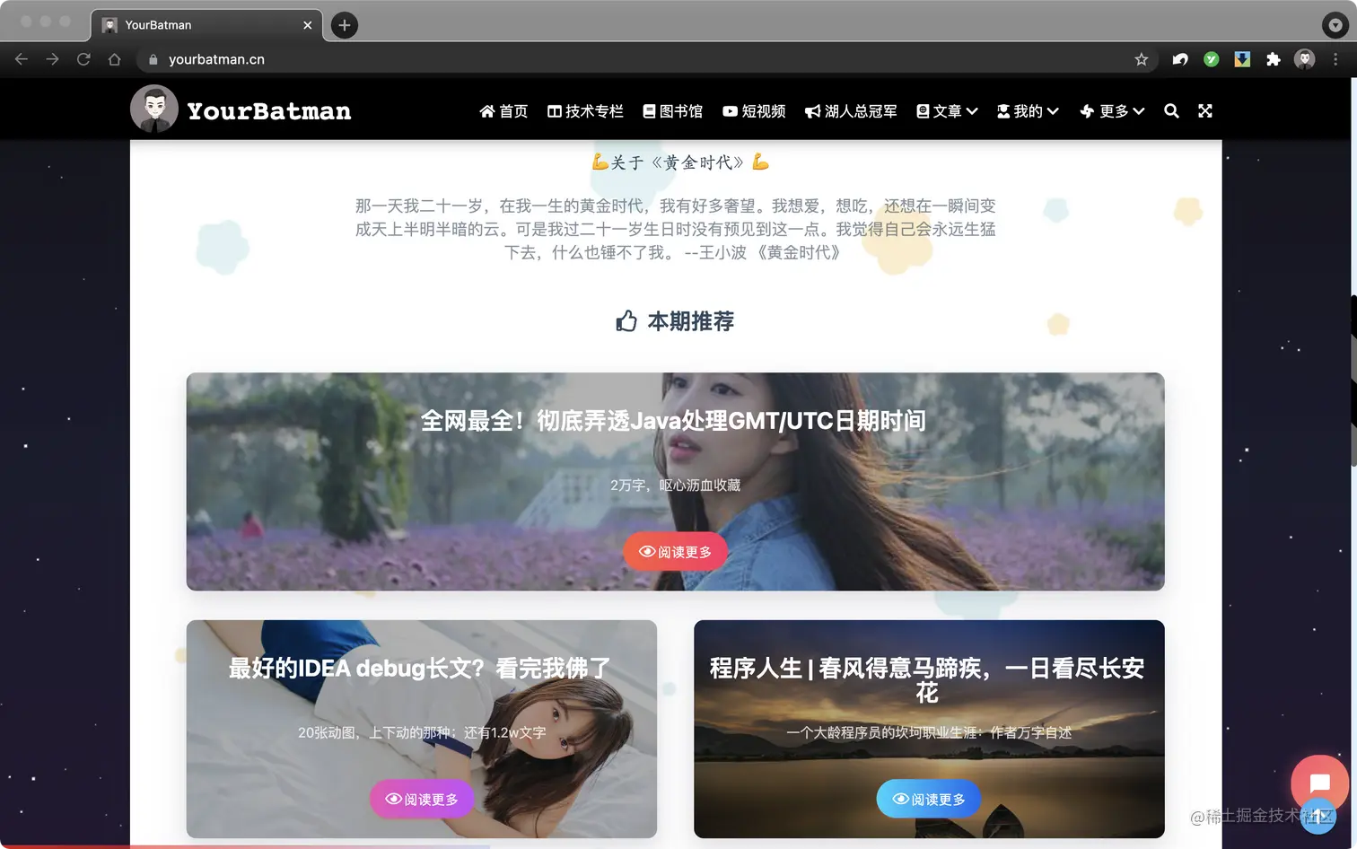 你好,我是YourBatman。本文阅读起来很轻松,介绍我近期建站的一些心得和站点内容分享:yourbatman.cn