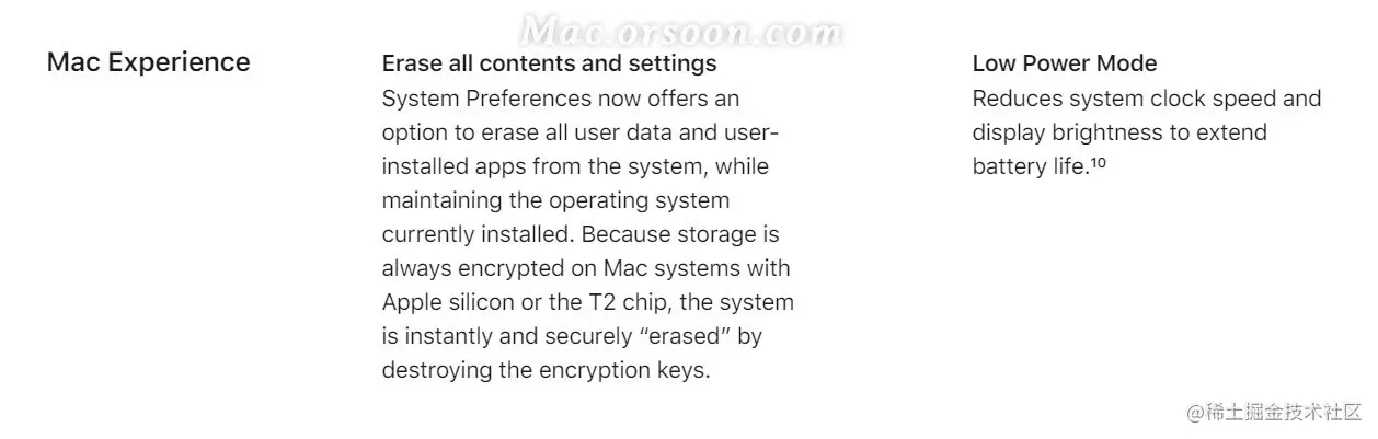 此外,macOS 12 Monterey 还支持了低功耗模式,该模式会降低系统时钟速度和显示亮度,以进一步延长电池寿命,支持 MacBook(2016 年初及之后)和 MacBook Pro(2016 年初及之后)。