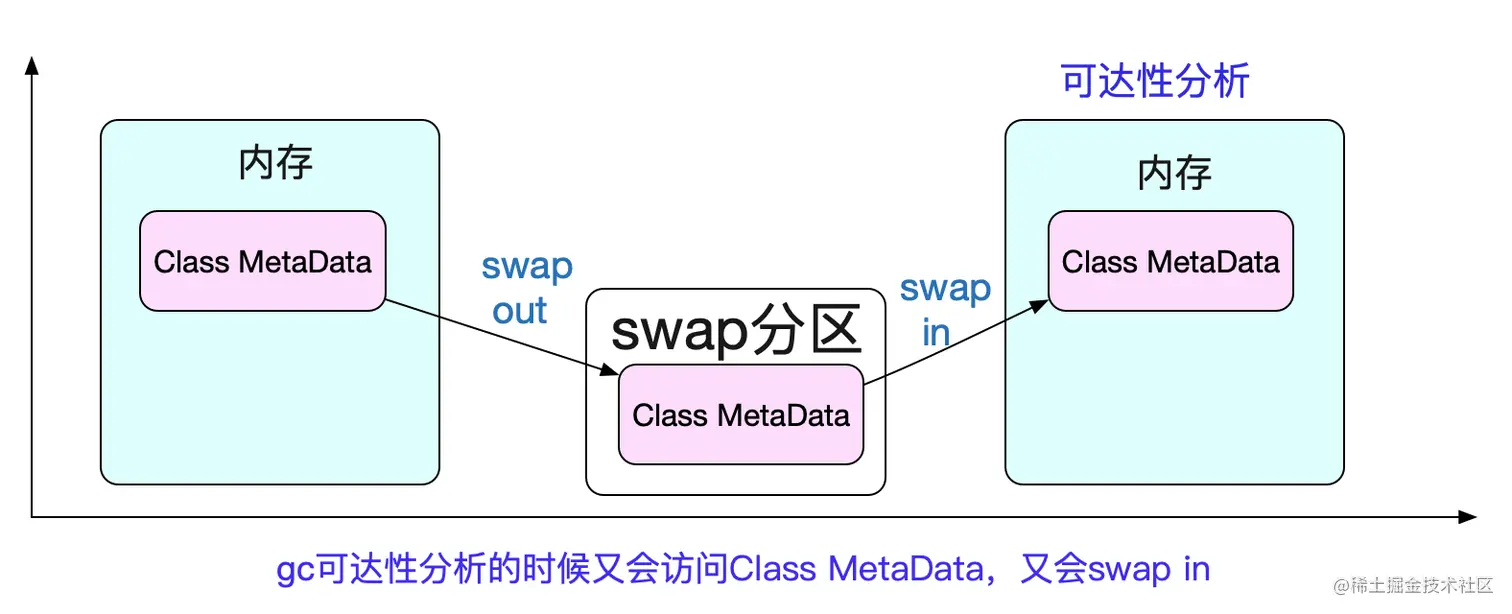 可能被kernel扔到swap里面。但这时候在GC可达性分析的时候,又会去访问这个MetaData信息,就导致虽然内存利用率不高,但依旧发生使用swap导致慢的情况!