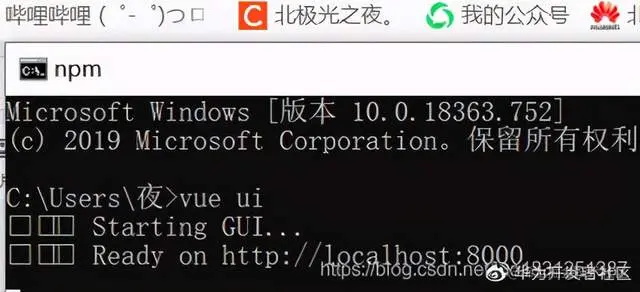 (1)打开 cmd 窗口输入 vue ui 打开 vue 的可视化面板: