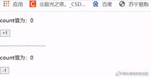 写一个计数器小案例,从案例中配合概念能更快上手 vuex。所以下面核心概念中的代码部分是基于这个小案例来演示的。目标:写两个子组件,有一个公共 count 值,在父组件中,其中一个组件实现点击后 count 值减 1,一个组件实现点击后 count 值增 1。