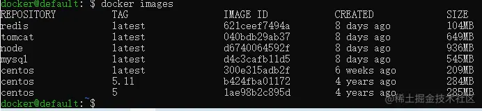 | REPOSITORY | TAG | IMAGE ID | CREATED | SIZE |