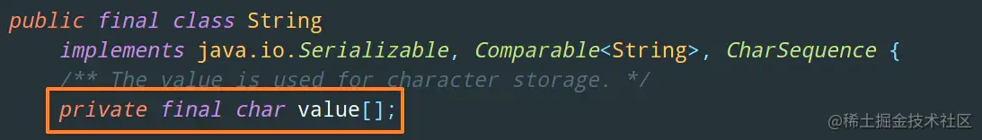 String类的值是通过char数组存储的,并且char数组被private和final修饰,字符串一旦创建就不能再修改。