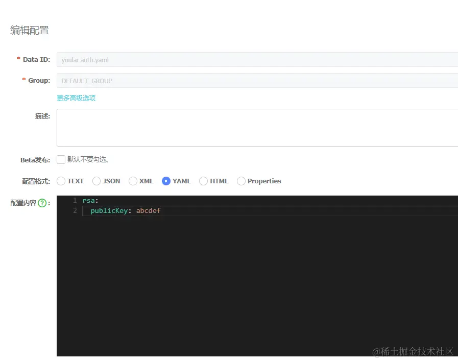 4.打开nacos管理控制台添加配置