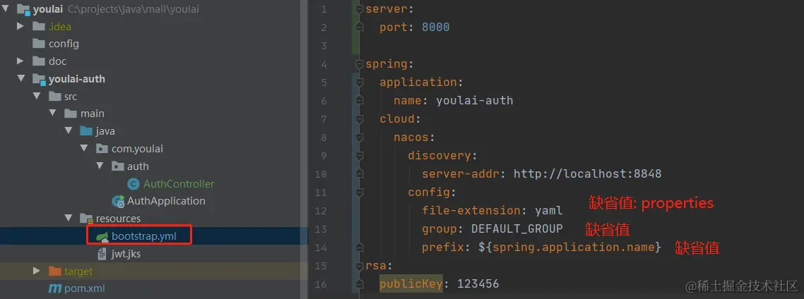 注意这里使用bootstrap.yml而非application.yml,避免applicaton.yml后加载于nacos配置并覆盖