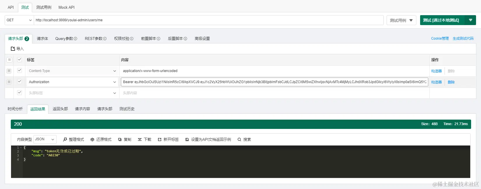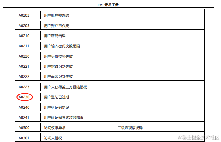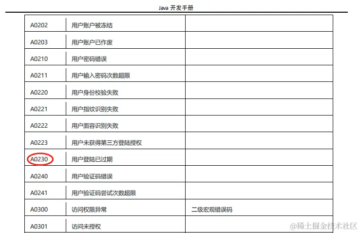 上面报“token无效或已过期”的响应码是"A0230",这个对应的是Java开发手册【泰山版】的错误码