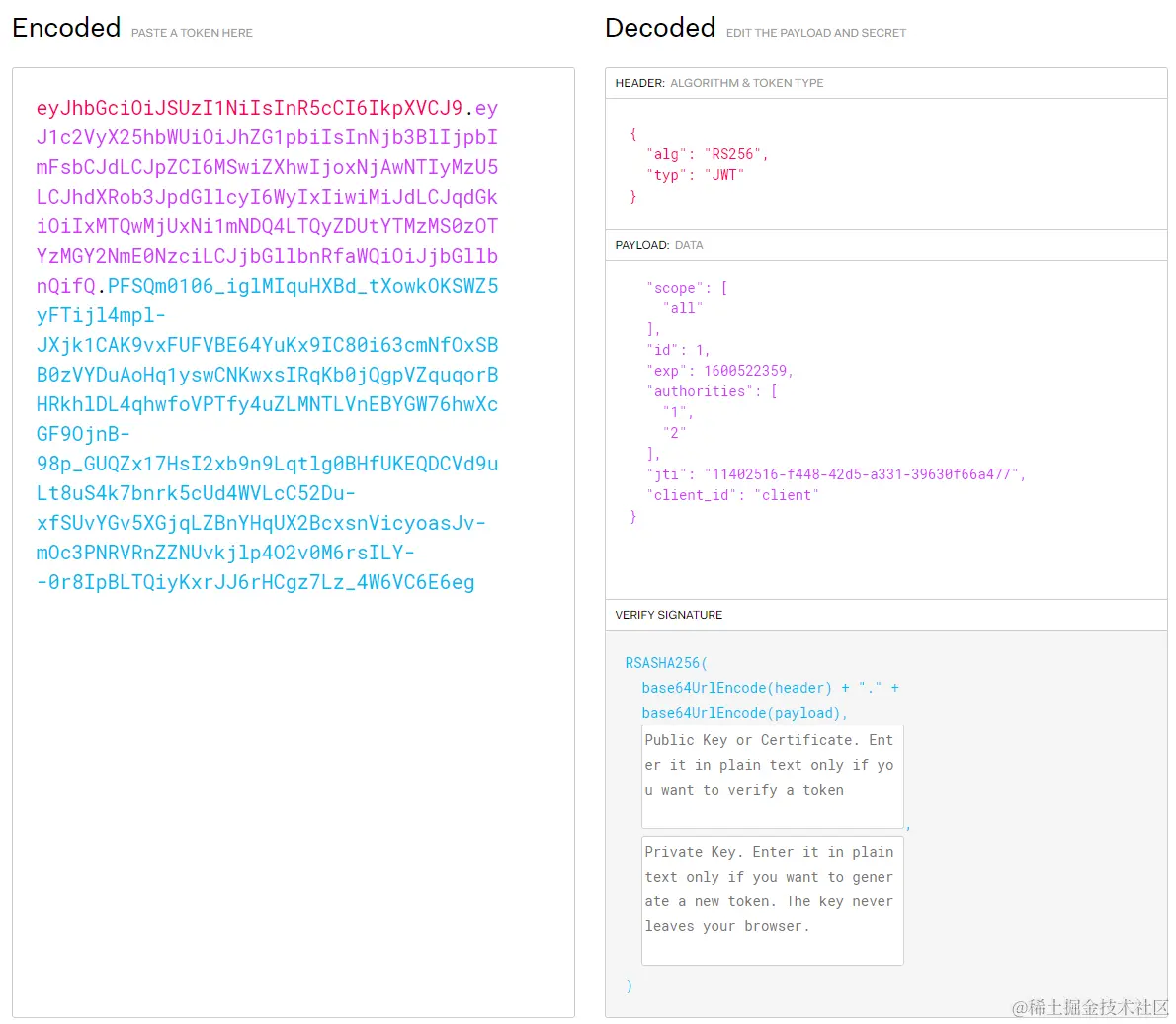 登出接口/oauth/logout的主要逻辑把JWT添加至Redis黑名单缓存中,但没必要把整个JWT字符串都存储下来,JWT的载体中有个jti(JWT ID)字段声明为JWT提供了唯一的标识符。JWT解析的结构如下: