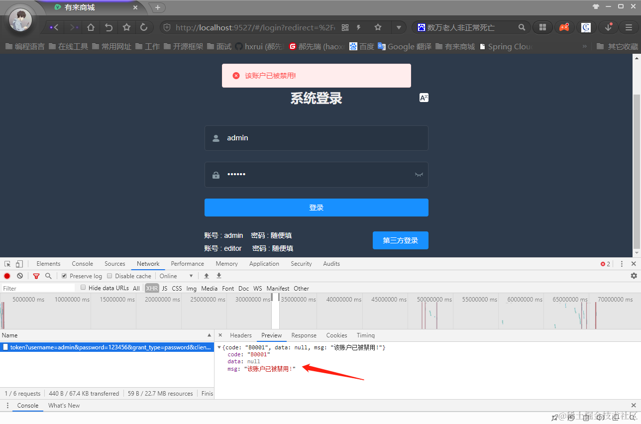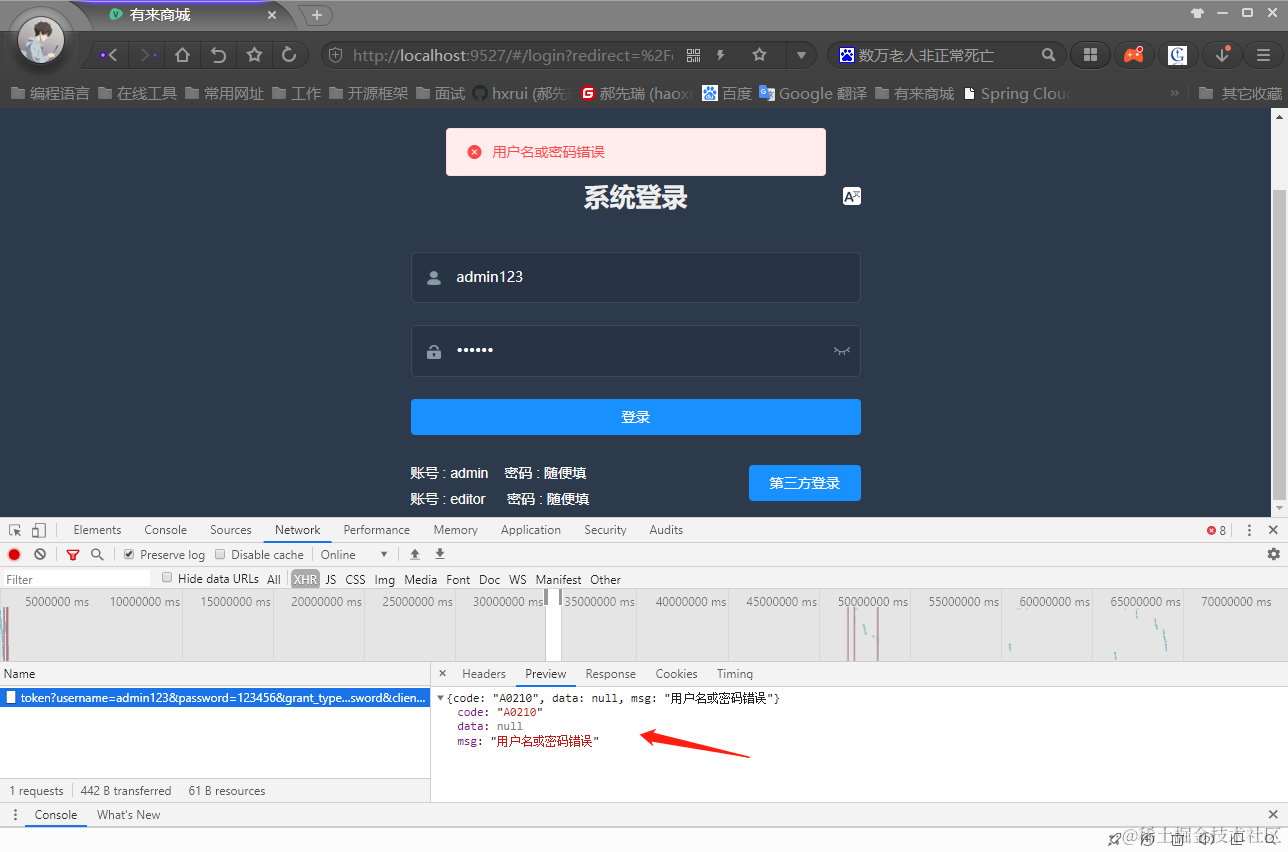 - 用户名或密码错误