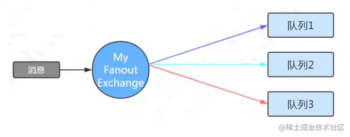 定义:广播类型的交换机与一个队列绑定时,不需要指定binding key。 路由规则:当消息发送到广播类型的交换机时,不需要指定routing key,所有与之绑定的队列都能收到消息。