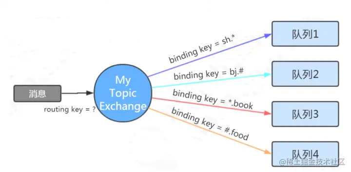 channel.basicPublish("MY_TOPIC_EXCHANGE", "bj.book", null, msg.getBytes());