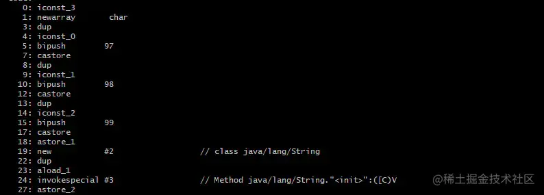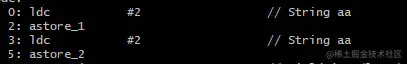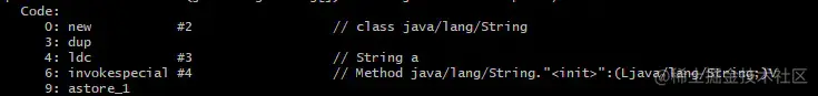 通过对上面进行反编译可以看到使用new创建对象的时候执行了ldc这个指令,ldc指令的意思是操作字符串常量池,如果有直接拉取下来,如果没有就创建一个对象在常量池中。