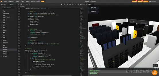 比如官方示例中通过 dbclick 事件来控制机柜开启,click 事件来控制鼠标右键关闭机柜。