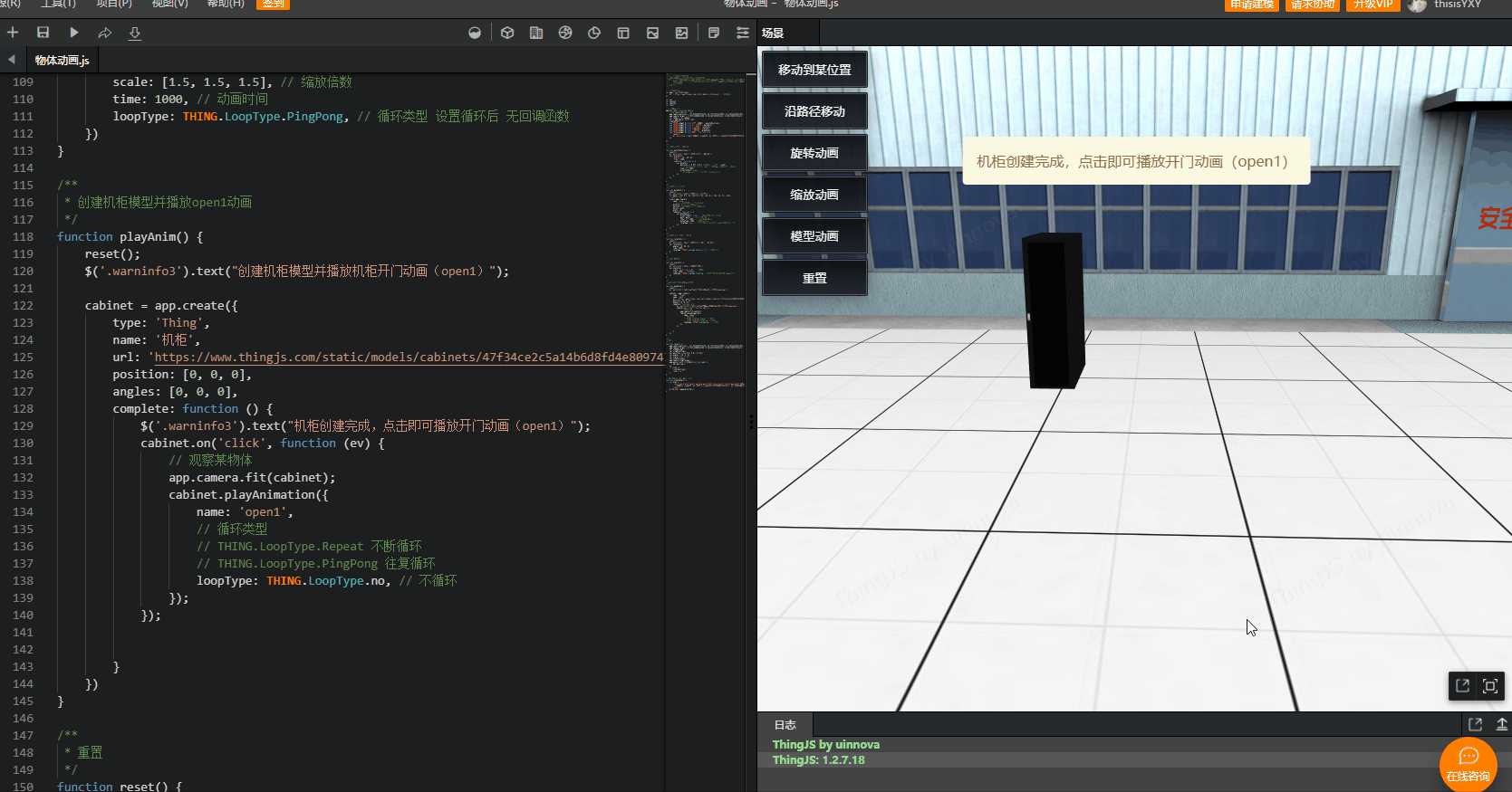 模型动画是3D可视化项目开发中的重要组成部分,我自己不会使用3D软件建模所以直接使用ThingJS模型库中的模型,对于没有建模师的团队来说非常方便。模型动画技术的合理使用,可以让3D可视化场景更加生动,交互效果更优,学会设置模型动画后就可以继续3D可视化项目的后续开发了。