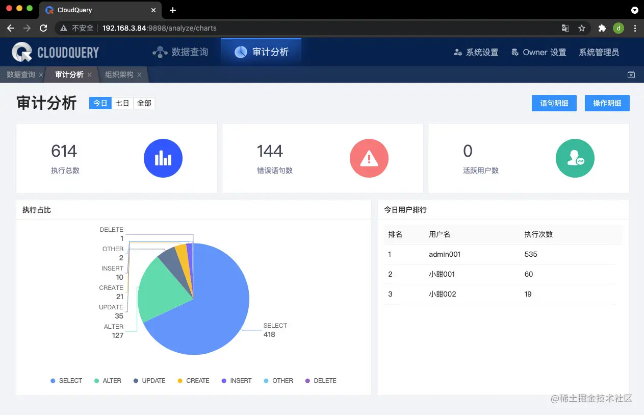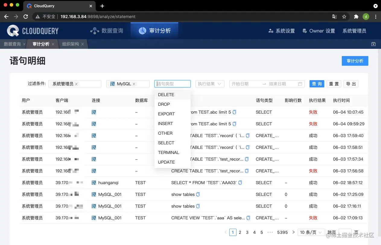 - 用户具体操作明细分析,用户的在 CloudQuery 上的操作均有明确记录。