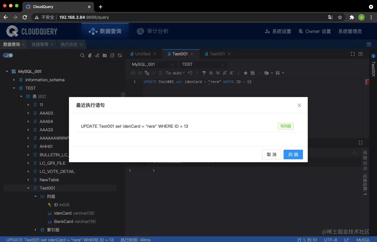 - 语句明细审计,凡是在编辑区操作过的语句均可立刻找到。