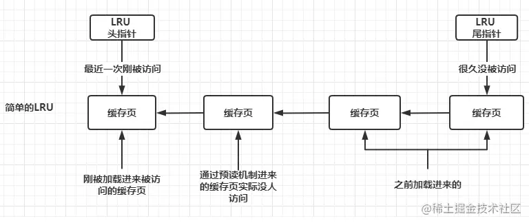 通过对Buffer Pool工作原理的讲解,我们知道一次查询操作可能会经历hash查找,磁盘加载数据到Buffer Pool,缓存页,free链,flush链的协调才能完成。当Buffer Pool内缓存页不足以支撑本次操作时,会通过LRU策略对缓存页进行淘汰,从而清理出足够的空间来完成本次的查询。那LRU这种方式会不会有什么弊端?InnoDB存储引擎又是如何解决弊端的呢?这就是本文要讲解的内容。