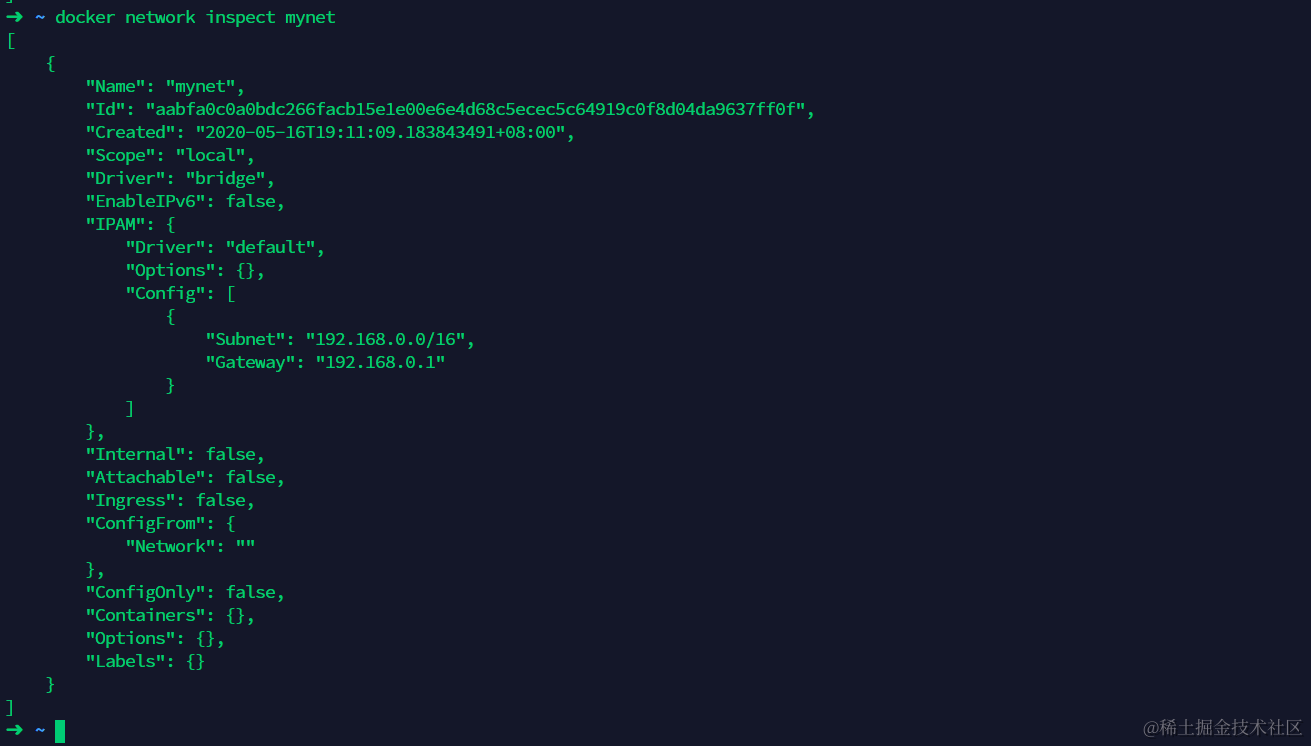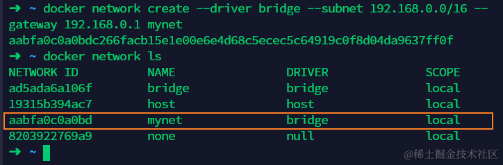 $ docker network create --driver bridge --subnet 192.168.0.0/16 --gateway 192.168.0.1 mynet