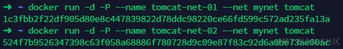 # 测试两个不同的网络连通 再启动两个tomcat 使用默认网络,即docker0