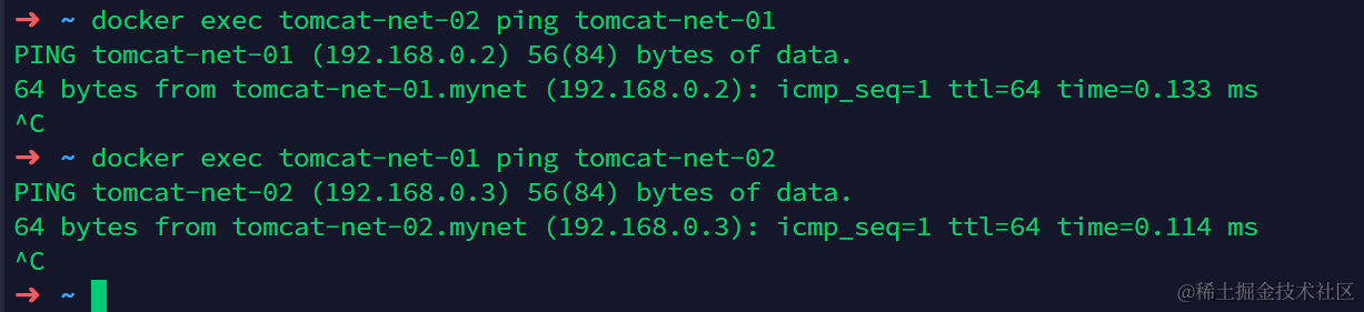 64 bytes from tomcat02 (172.17.0.3): icmp_seq=2 ttl=64 time=0.080 ms