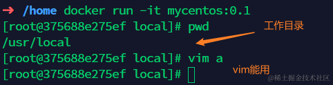 [root@iz2zeak7 home]# docker run -it -v /home/ceshi:/home centos /bin/bash