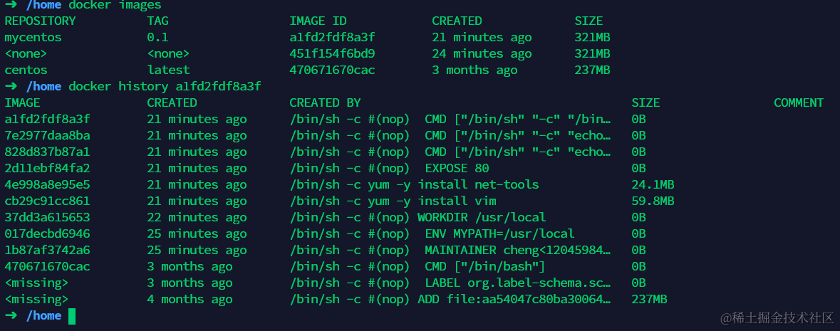 通过这个脚本可以生成镜像,镜像是一层一层的,脚本是一个个的命令,每个命令都是一层!