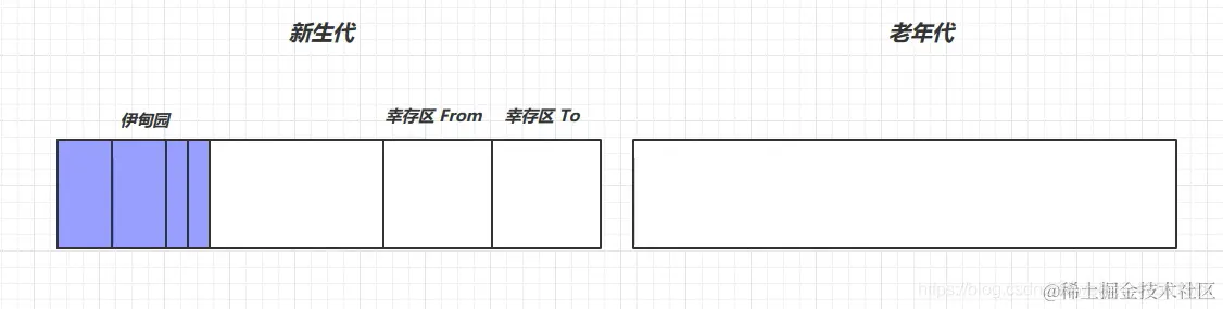 - 新生代里有 3 个分区:伊甸园、To 幸存区、From 幸存区,它们的默认占比是