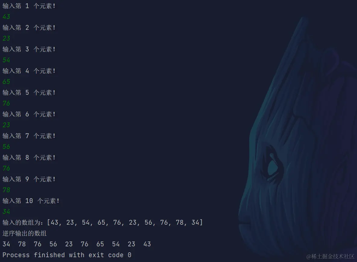 System.out.println("逆序输出的数组");