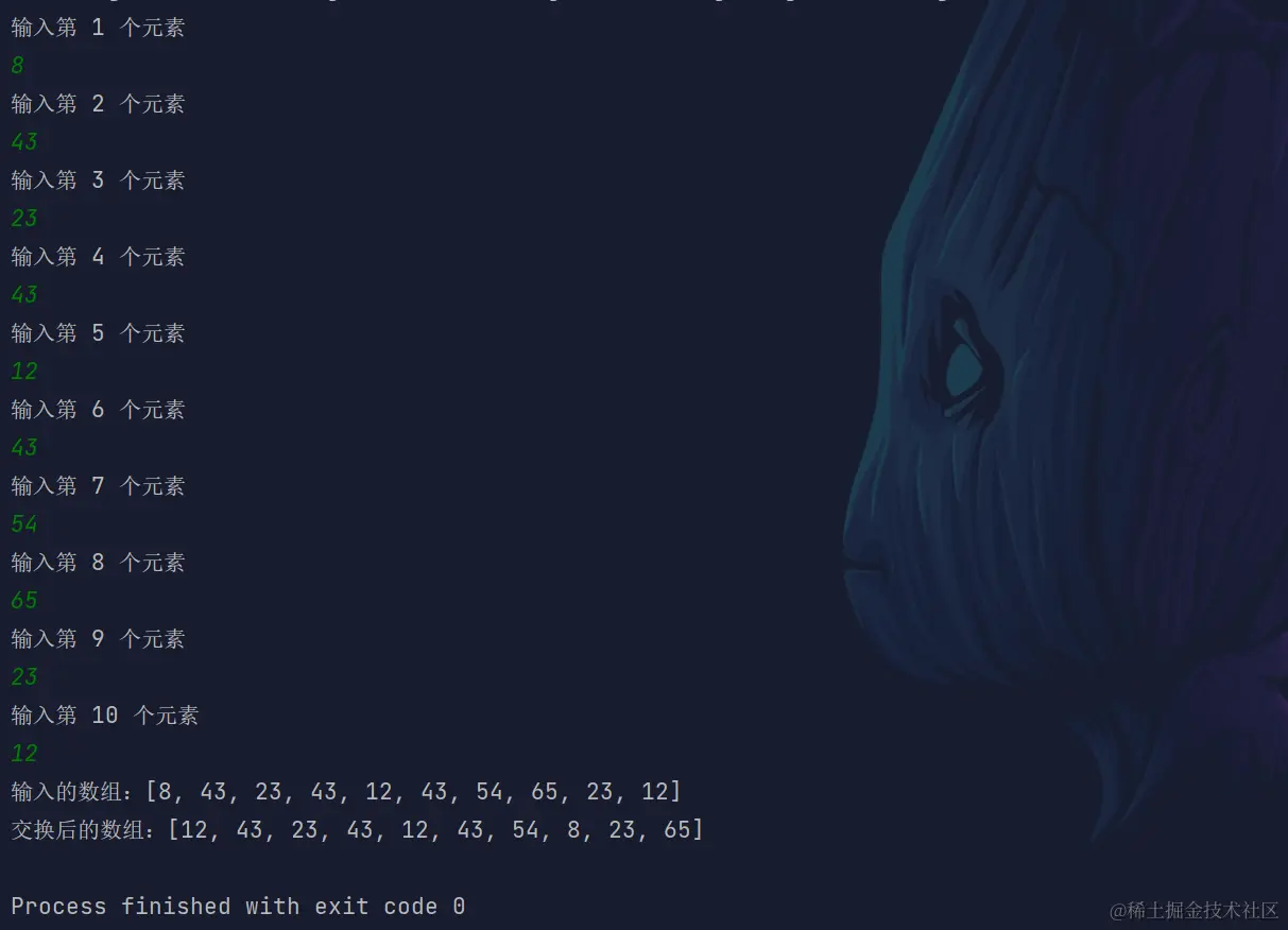 System.out.println("交换后的数组:" + Arrays.toString(arr));