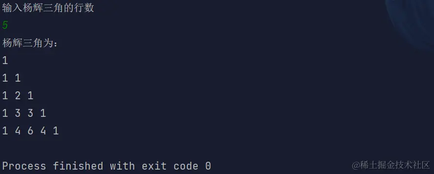 System.out.println("杨辉三角为:");