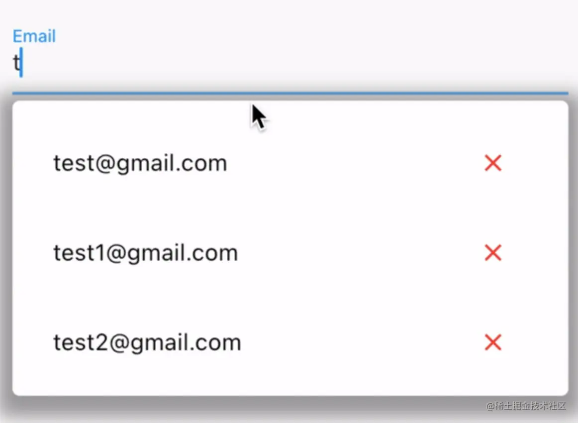 如果我们给出一个 userSuggestions,它是 List<usermodel> 。然后我们必须添加 searchBy 属性。我们的模型只有电子邮件和密码,对吗?所以我们可以这样实现: searchBy: email 或者 searchBy: password。