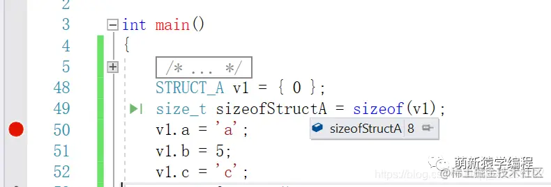 面对以上的一个结构体,初学者可能认为是1+4+1总共6个字节。那么我们来实际看看它的大小究竟是多少: