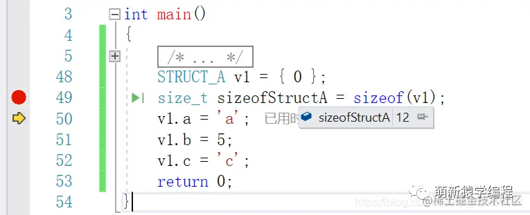 按照我们的想法,那应该UNION_A所占内存大小为8字节,那么STRUCT_B应该按照8字节对齐,那么5个数据成员,大小应该使5*8=40字节,但是实际情况好像并不是这样: