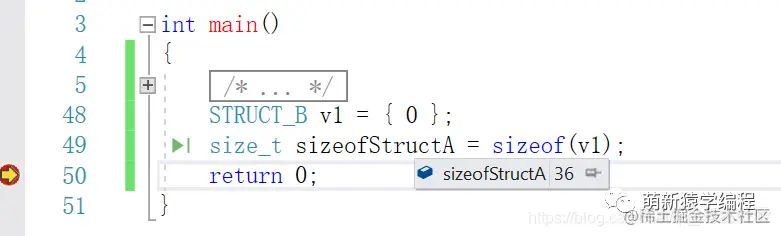 怎么会出现36这个情况呢?原因出现在STRUCT_A中,虽然unionA的大小确实为8字节,但是其8字节的主要原因是STRUCT_A是8字节,那STRUCT_A中是两个4字节的成员,所以内存粒度对齐还是4字节,这样就不难理解最后的STRUCT_B为36字节了,其中前4个成员是32字节,最后一个是2字节,但是按照4字节对齐,所以是36字节。