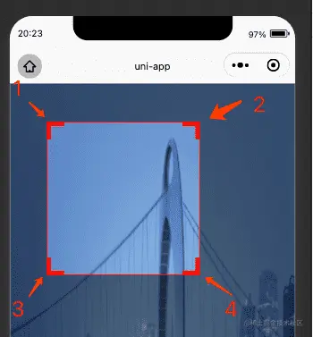 后续的话就可以进行四个角拖拽了,这里用到了 touchStart 和 touchMove,动态地为方框绑定样式