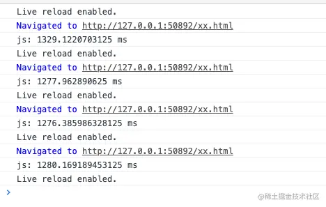 用 live-server 测试时间,用时 1275 毫秒到 1329 毫秒。