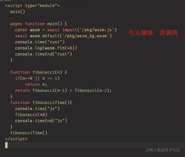 首先我们用原生的 js 写一段 fib 代码测试时间,代码内容如下: