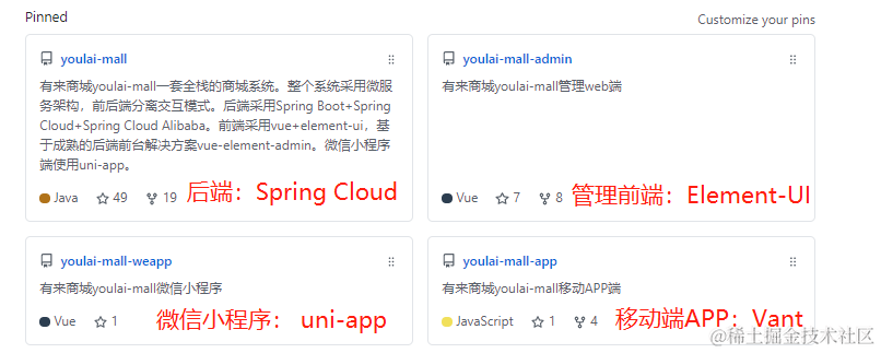 有来商城 youlai-mall 项目是一套全栈商城系统,技术栈是分布式微服务加上前后端分离模式,所以在本篇项目实战开始之前需要一些往期文章作为基础。