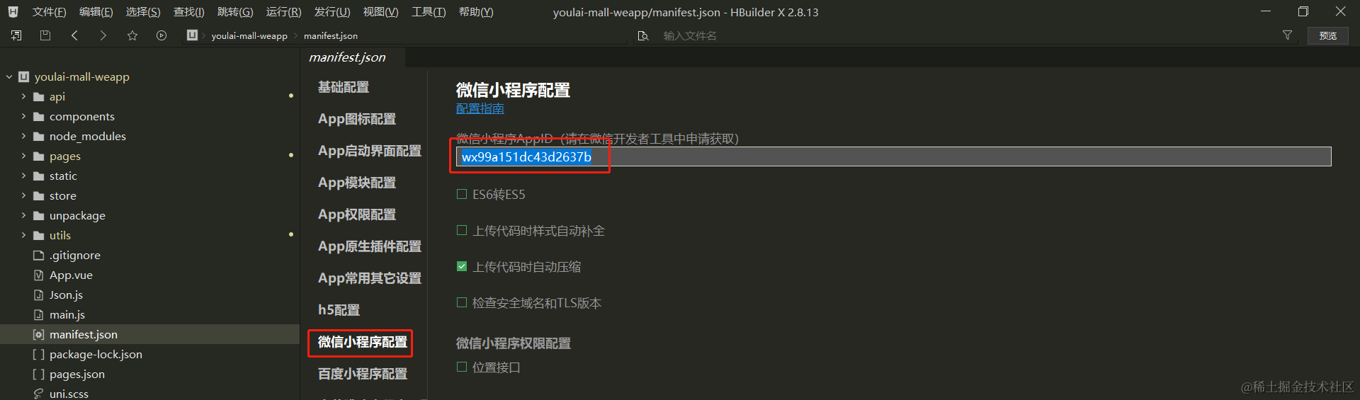 4.1.1 修改导入模板项目名称为youlai-mall-weapp,并在manifest.json配置AppID
