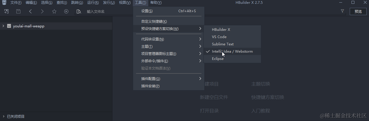 PS: 习惯了IDEA的快捷键童靴们在使用HBuilderX开发之前,建议预先切换下快捷键方案,是不是很人性化的一个开发工具。