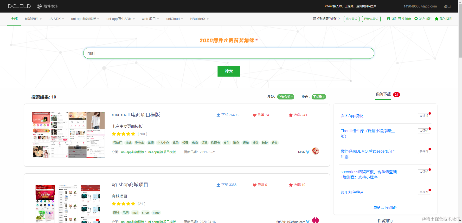 还记得上面说的很神奇的uni-app框架吗?它提供了插件市场,里面有很多基于uni-app开发的组件和模板。