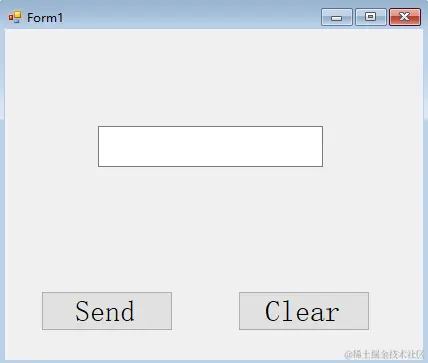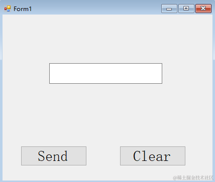 清楚了这几个概念后,就来实现我们想要的功能,按下按钮是一个事件,那么,如何编写或者在哪编写这个事件的事件处理函数呢?在VS中很方便,只需要双击这个控件,VS就会自动将该控件的事件处理函数添加进Form1.cs文件,此处我先双击“Send”按钮,可以看到VS自动添加进了 private void button1_Click(object sender, EventArgs e) 这个方法,然后在里面编写代码,让文本框显示:这里所有的控件都是一个具体的对象,我们要通过这些对象设置其属性或者调用其方法;同样的道理,双击Clear按钮,添加文本框清空代码,完整代码如下: